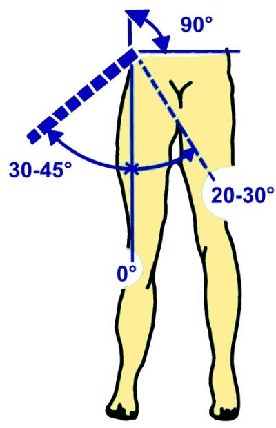 Hüftgelenk (in Extension): Drehung auswärts - einwärts